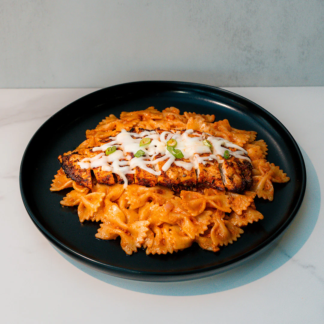 Creamy Farfalle & Chicken Alfredo brings a classic Italian-style comfort meal into a ready-to-heat meal prep format. Tender chicken and farfalle pasta are coated in a rich alfredo-style sauce made with real dairy and cheeses. With 49g of protein per package, it’s a satisfying, healthy option for busy weeknights when you still want gourmet taste. Great for anyone looking for a high-protein pasta dinner that heats fast and eats like a fresh-made entrée.